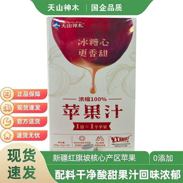 天山神木浓缩冰糖心苹果汁新疆阿克苏红旗坡独立包装酸甜果汁270g*(2盒包邮)
