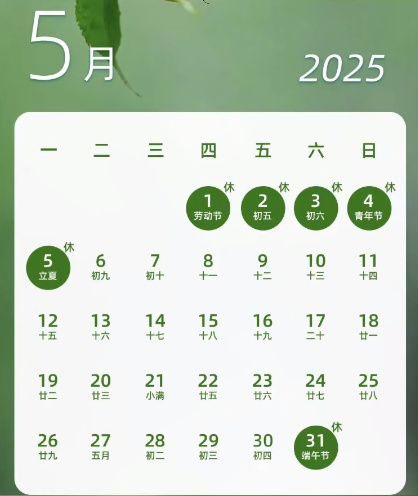 5月1日(周四)至 5日(周一)放假调休,共5天;4月27日(周日)上班