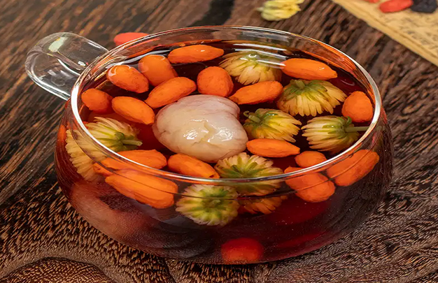 2.菊花枸杞茶:菊花清热解毒,枸杞补肾益精,红枣补血。这款茶特别适合长时间面对电脑屏幕的上班族,能够缓解眼部干涩、疲劳,保护视力。