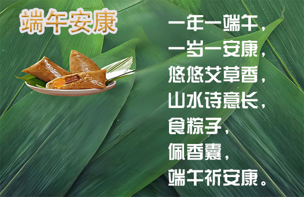 五月端阳艾草香,情系片片粽叶长;风调雨顺歌盛世,泪罗江上竞舟忙;千古离骚爱国赋,路漫漫兮永流芳;朝花夕拾杯中酒,岁岁年年永安康。