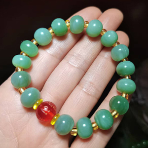 和田玉粉青和田玉足金前途无量手链(男士款)