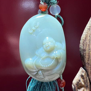 和田碧玉粉青佛挂件