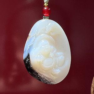 和田墨玉籽料佛挂件(黑白分明俏色雕刻)