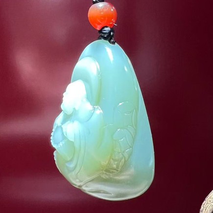 佩戴和田碧玉粉青佛挂件寓意为:心境清净、慈悲包容、平安喜乐、福慧双增,同时彰显佩戴者的高雅气质与精神追求。