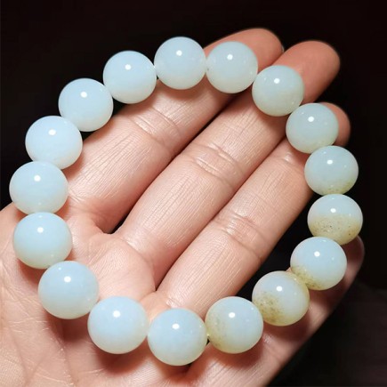 和田糖白玉手链,珠子大小卡12mm,珠圆玉润。