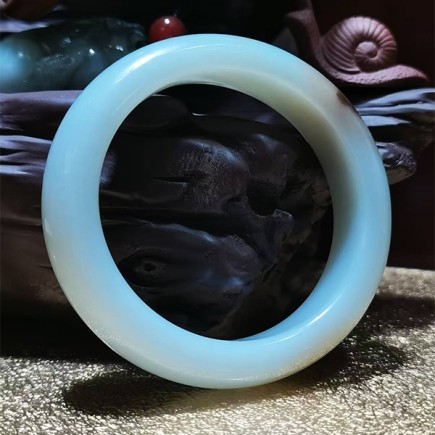 和田羊脂玉手镯(天然蓝光)