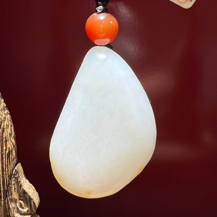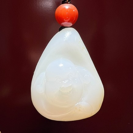天然和田羊脂玉白观音挂件 天然俏色皮