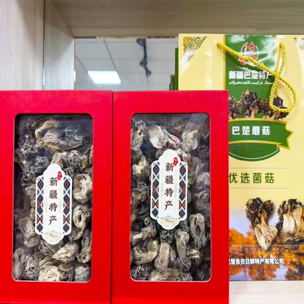 巴楚蘑菇:是叶尔羌河水、千年胡杨树、干旱少雨的大漠气候条件孕育出的珍稀食用菌,属皱柄羊肚菌,也叫巴楚木耳蘑菇。顶部是黑褐色的木耳状,整株形状如同蘑菇上面嫁接了木耳一般,