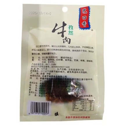 • 商品名称:巴口香牛肉干新疆50g*10袋套餐酱卤麻辣香辣孜然葱香芝麻牛肉零食 包邮