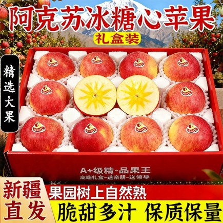 新疆阿克苏正宗冰糖心苹果 苹果应当季新鲜果王(95+)新疆阿克苏产地直发 礼盒包邮