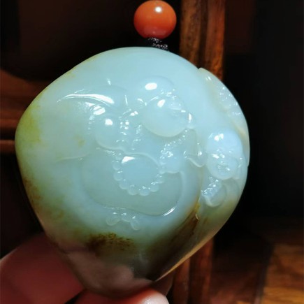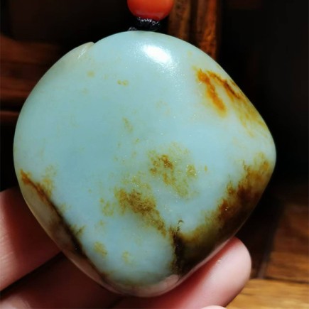 新疆和田且末料---糖白玉双螭龙平安扣吊坠