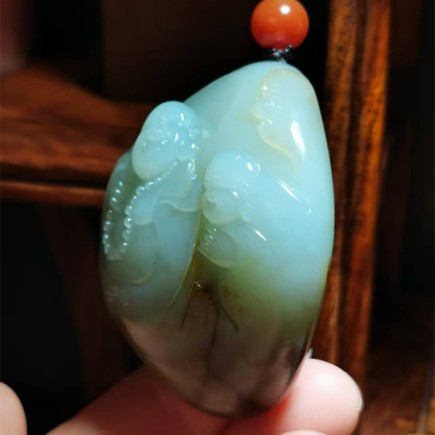 新疆和田籽料佛挂件,天然和田玉籽料苏工雕刻,天然褐色皮,天然籽料毛孔,玉质细腻油润。