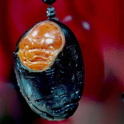 和田黑皮红玉饕餮瑞兽把玩件,天然原籽黑皮,开窗巧雕红玉饕餮瑞兽,收藏把玩潜力巨大。