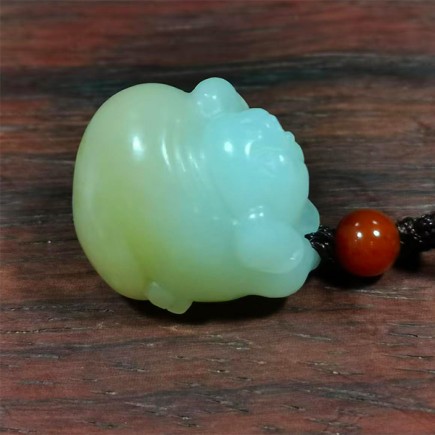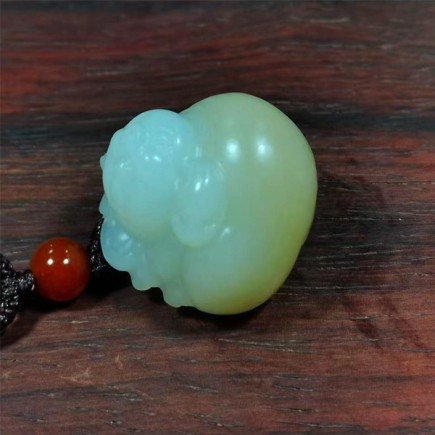 新疆和田且末料---糖白玉双螭龙平安扣吊坠