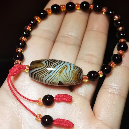 和田白玉六字真言红玛瑙连年如意配饰手链