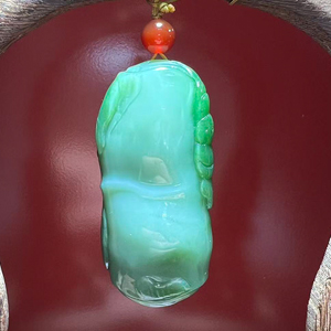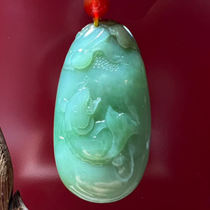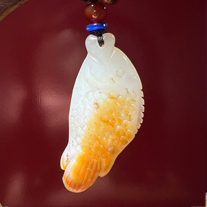 和田碧玉粉青糖皮俏色 连年有鱼挂件