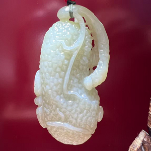 和田玉3色俏色巧雕 扭转乾坤挂件