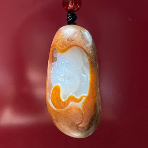 天然俏色和田羊脂白玉观音吊坠(已售)