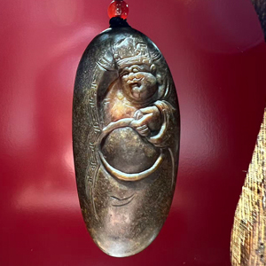 和田墨玉籽料佛挂件(黑白分明俏色雕刻)