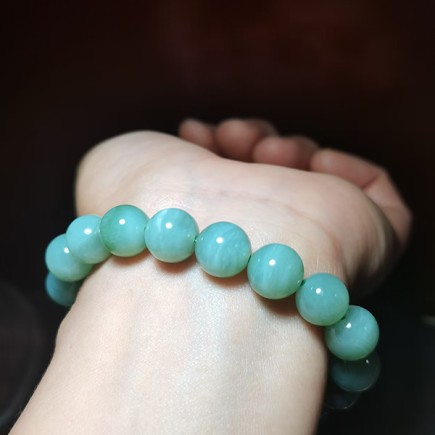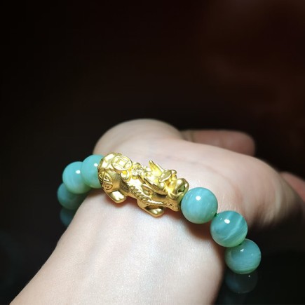 和田玉粉青足金招财貔貅手串(美女款),粉青和田玉珠子9mm,配足金招财貔貅。