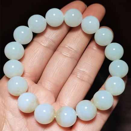 和田糖白玉手链,珠子大小卡12mm,珠圆玉润。