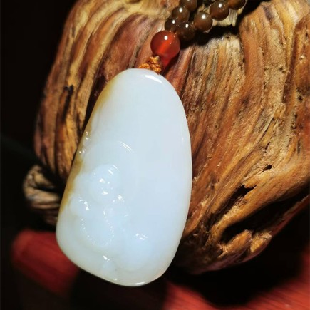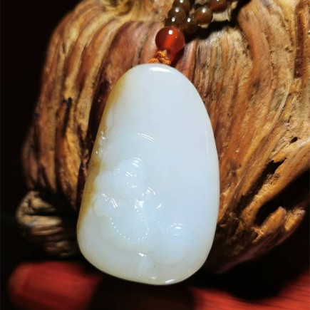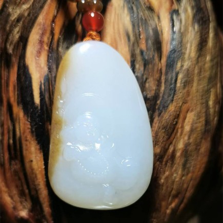 新疆和田且末料---糖白玉双螭龙平安扣吊坠