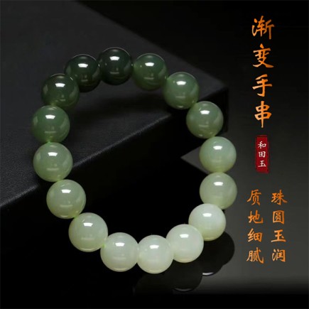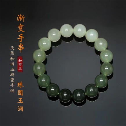 和田玉渐变手链,珠圆玉润,色泽漂亮,卡12mm珠子。