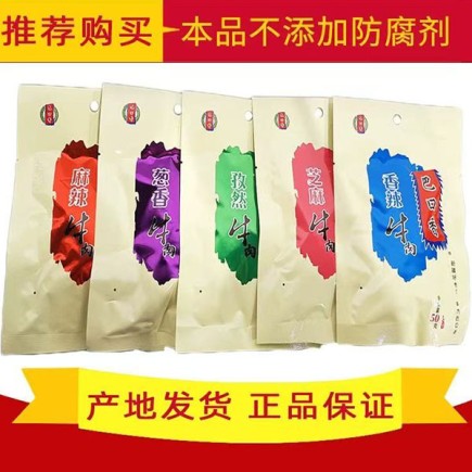 • 商品名称:巴口香牛肉干新疆50g*10袋套餐酱卤麻辣香辣孜然葱香芝麻牛肉零食 包邮