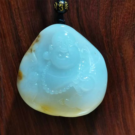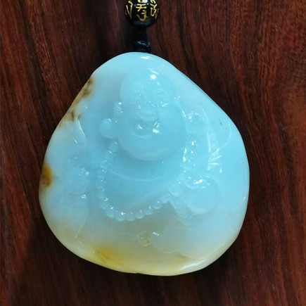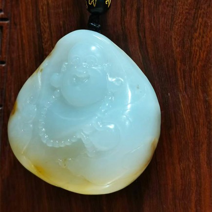 和田玉籽料黄皮俏色佛,天然和田玉籽料,石皮俏色包裹,玉质非常细腻白润。、