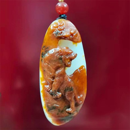 和田玉虎虎生威挂件,天然红皮籽料挂件,红油皮白肉,利用皮色巧雕刻。