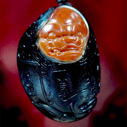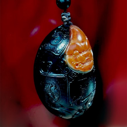 和田黑皮红玉饕餮瑞兽把玩件,天然原籽黑皮,开窗巧雕红玉饕餮瑞兽,收藏把玩潜力巨大。