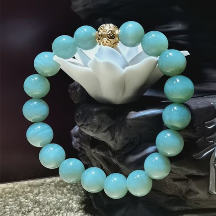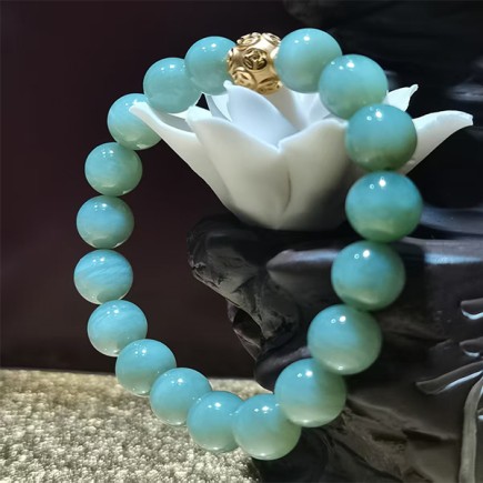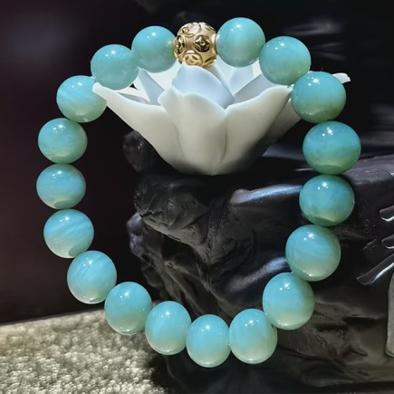 和田玉粉青和田玉足金手链,和田玉珠大小9mm,999足金前途无量珠子。